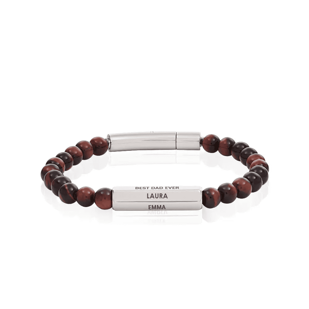 Изненадайте таткото с уникална персонализирана гривна, която изразява неговата безценна роля в живота на децата му. Тази елегантна мъжка гривна се състои от шест страни, които могат да бъдат персонализирани с произволно гравиране. Изработена от висококачествени материали, тя е перфектната комбинация от стил и сантиментална стойност. Перфектният подарък за баща, който гордо ще носи името на всяко от децата си на китката си.